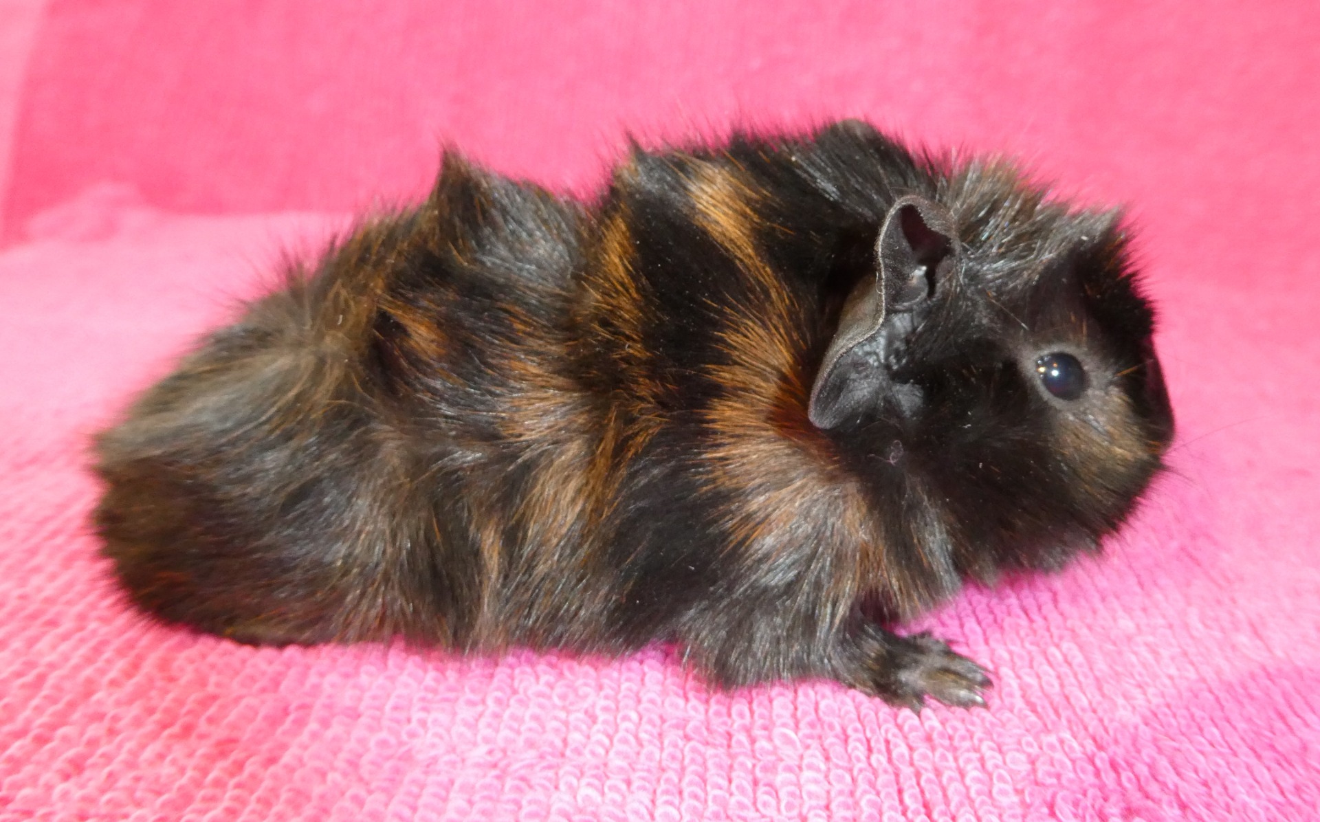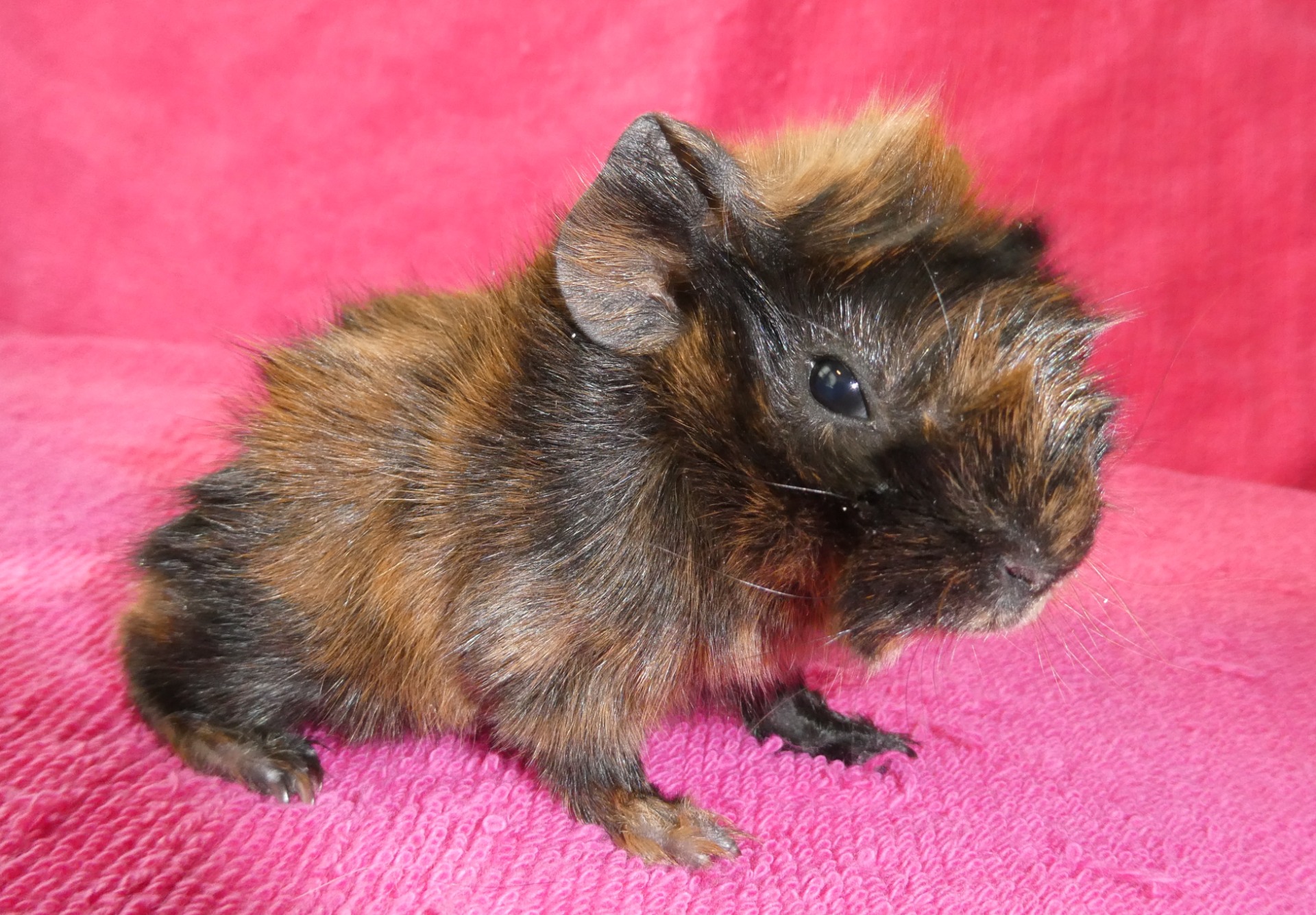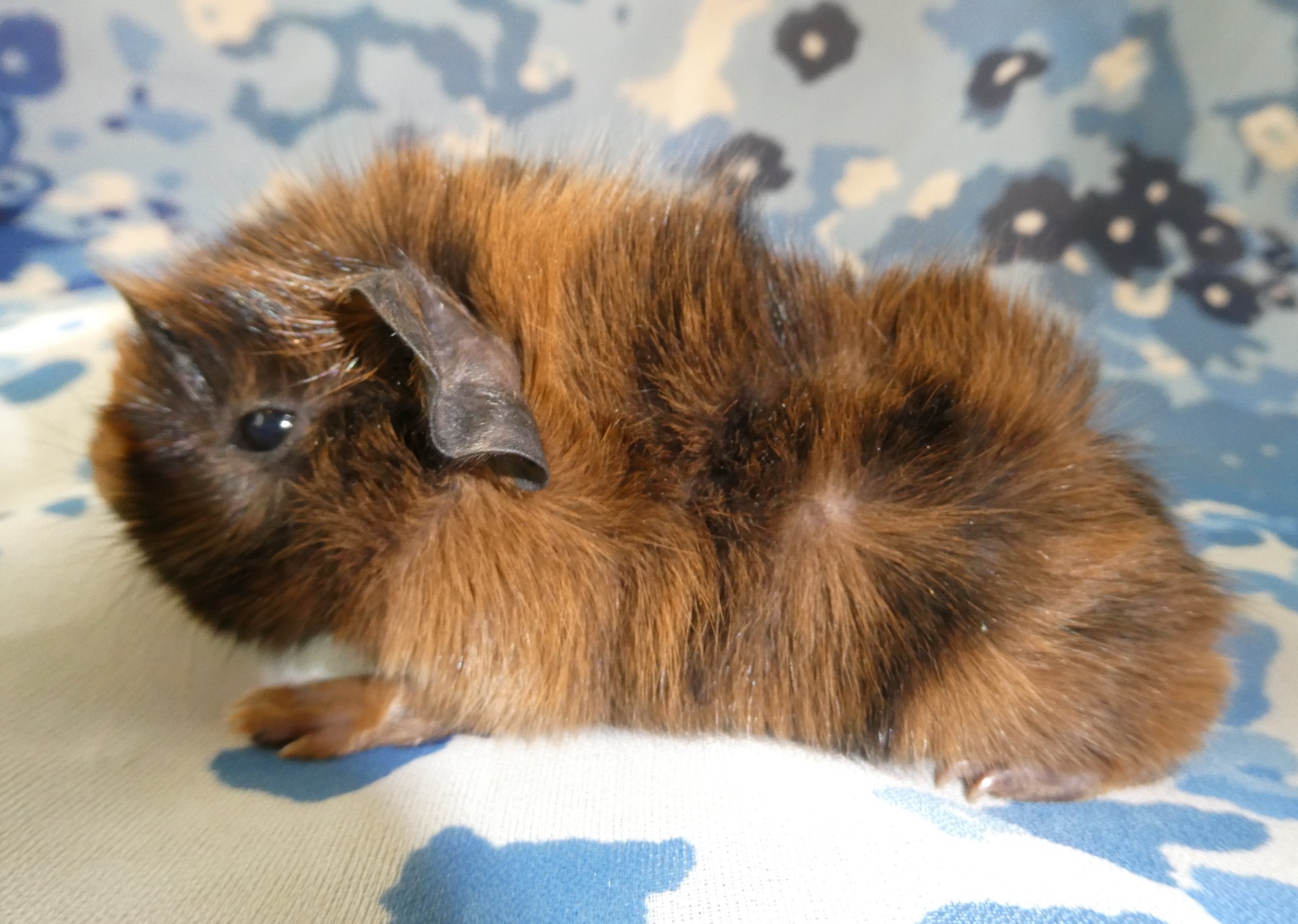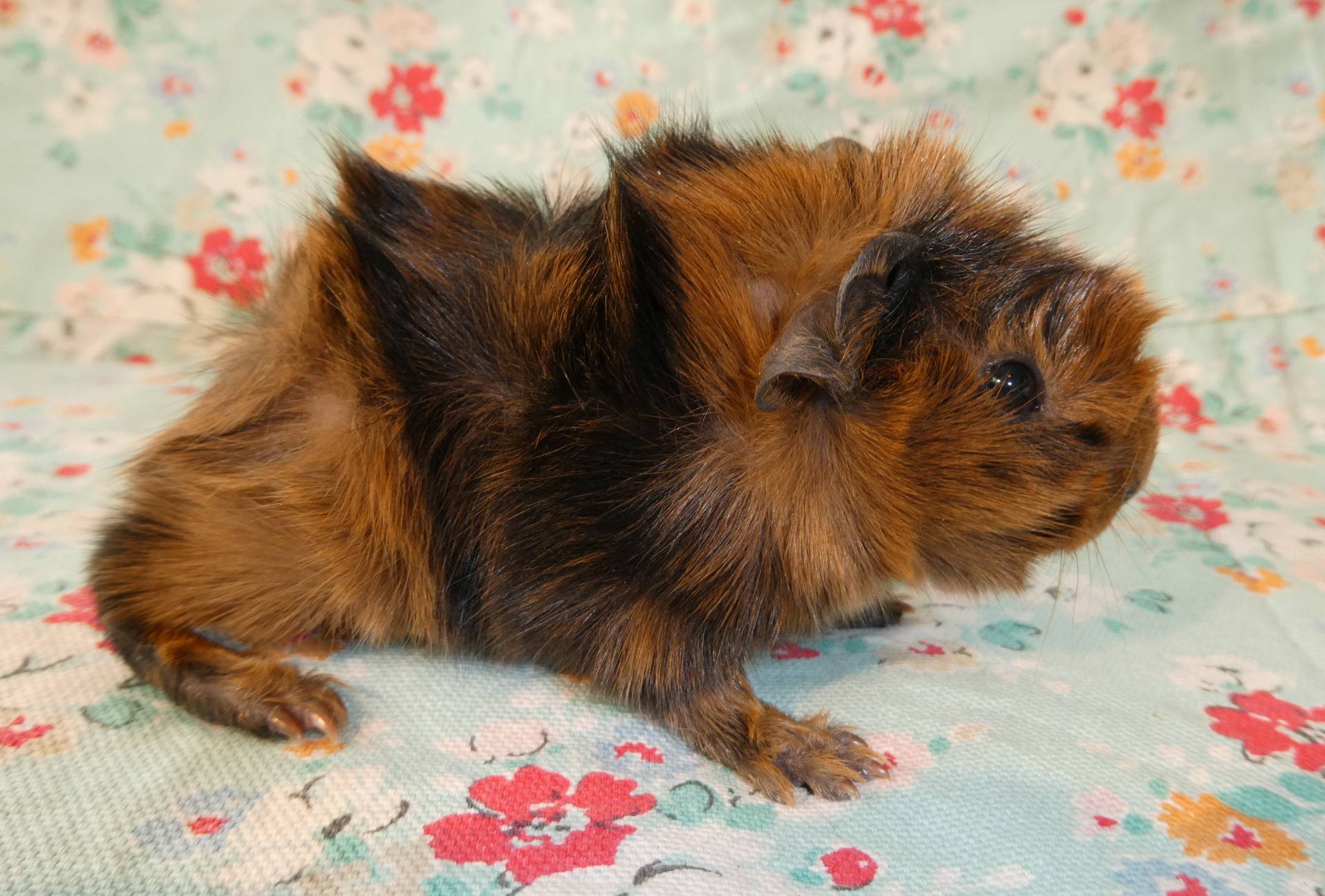 Marsvinen är av rasen abessinier. De får flytta tidigast då de är fem veckor.