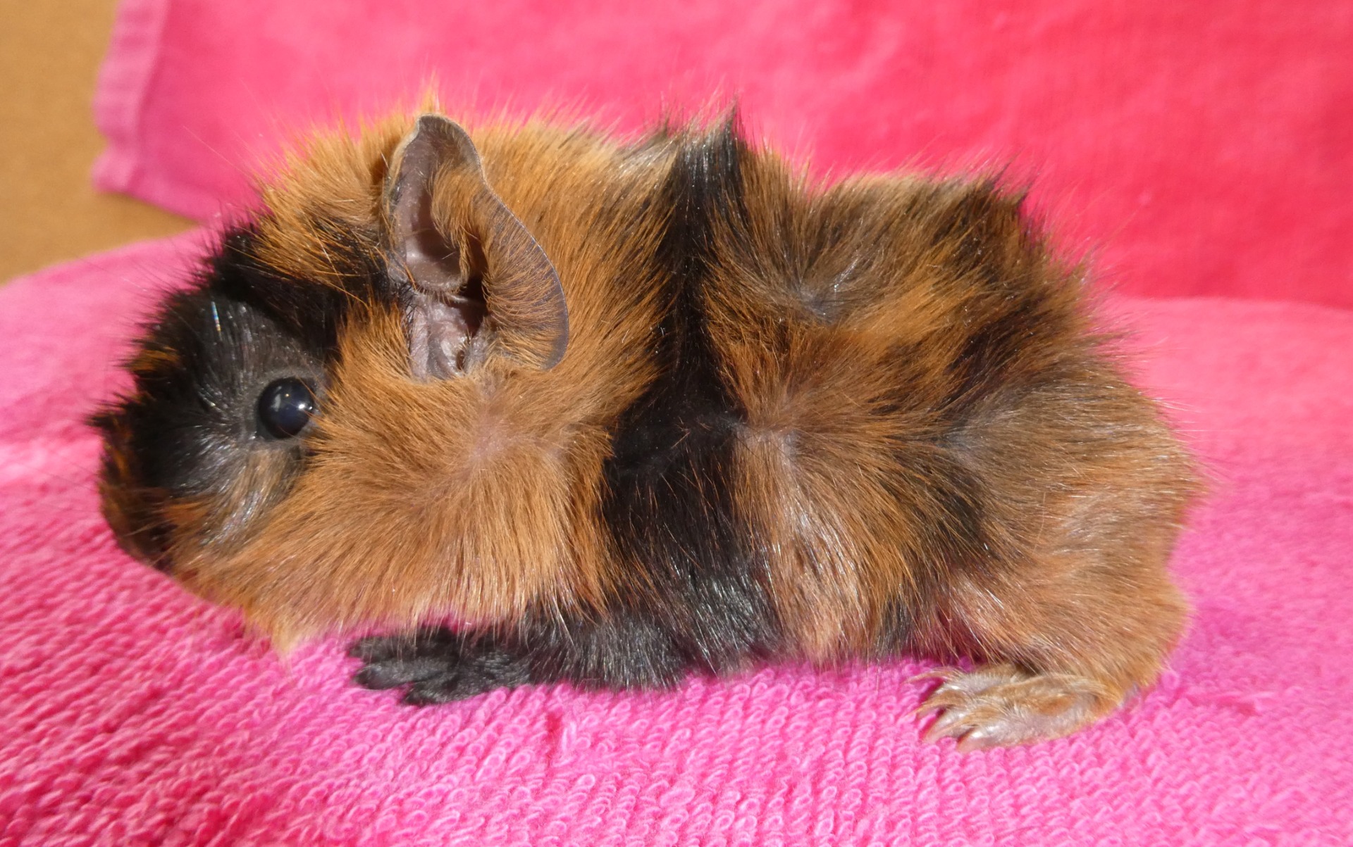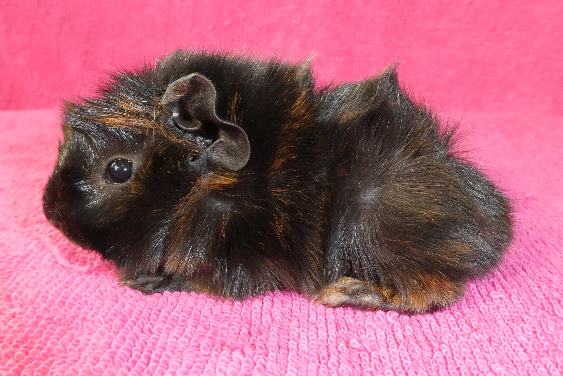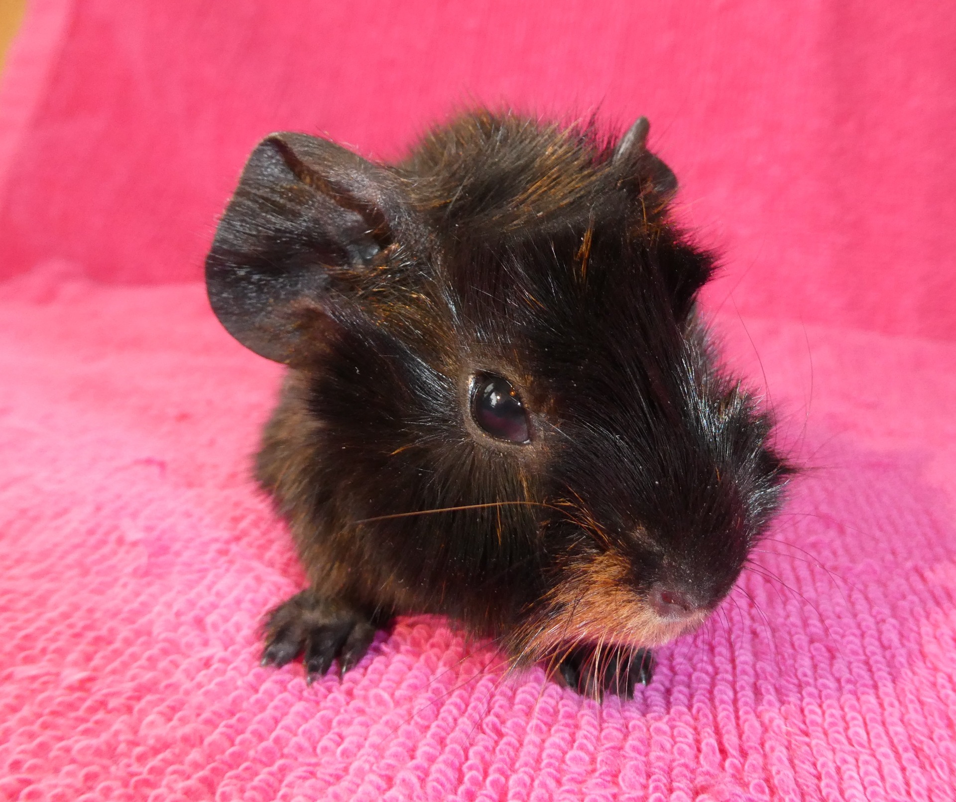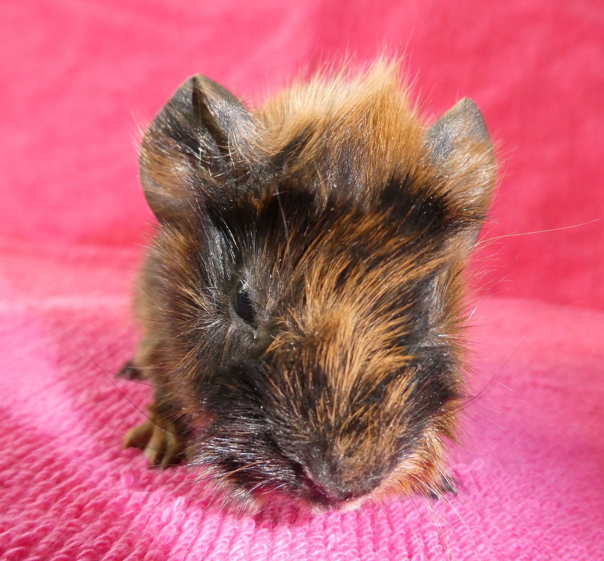 Marsvinen är av rasen abessinier. De får flytta tidigast då de är fem veckor.